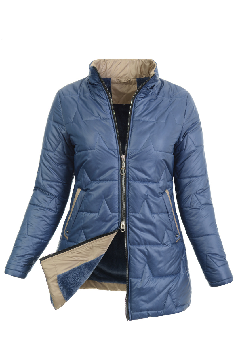 Przepiękna, modna damska zimowa kurtka ortalionowa. Kurtka jest w kolorze niebieskim, zapinana na podwójny suwak. Ocieplona wysokiej jakości ociepleniem syntetycznym, który zapewnia termoizolację i wysoki komfort użytkowania, podszewka kurtki jest wykonana z futerka. Posiada dwie pojemne kieszenie po bokach. Dodatkowo kurtka posiada odpinany kaptur ze ściągaczem. Kurteczka jest idealnym rozwiązaniem dla osób ceniących sobie wygodę idealna do wielu stylizacji.