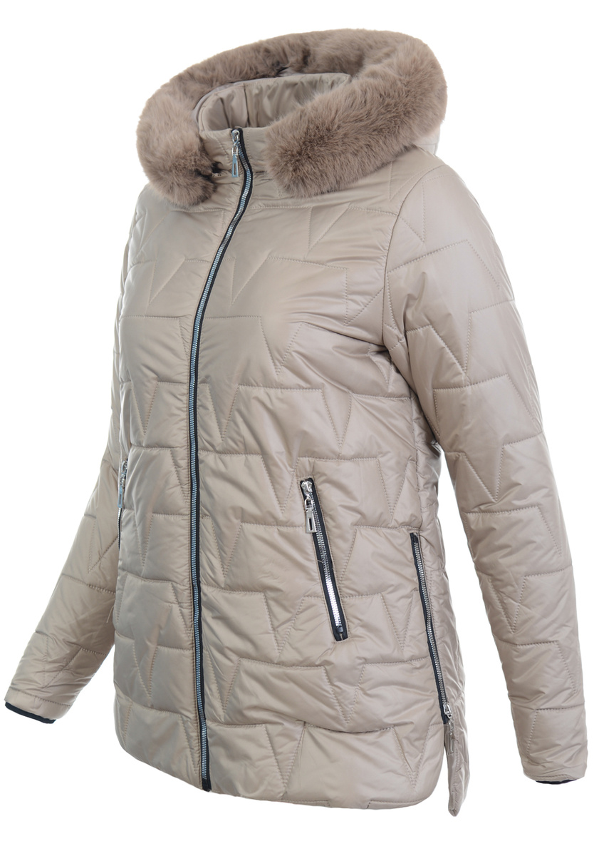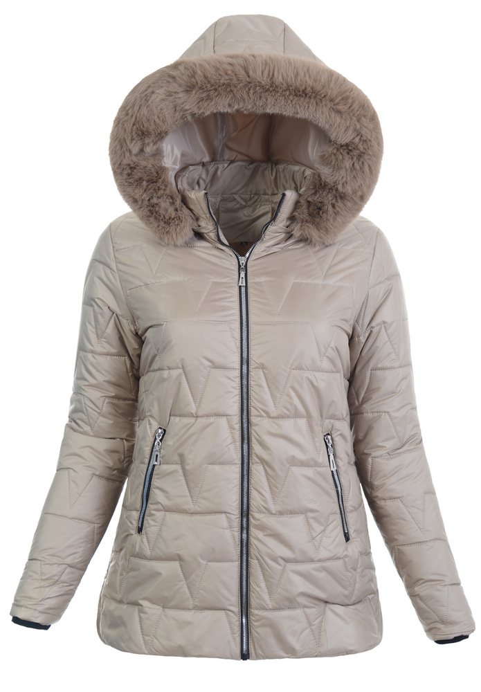 Przepiękna, modna damska zimowa kurtka ortalionowa. Kurtka jest w kolorze beżowym, zapinana na suwak. Ocieplona wysokiej jakości ociepleniem syntetycznym, który zapewnia termoizolację i wysoki komfort użytkowania, dodatkowo podszewka wykonana jest z futerka. Posiada dwie pojemne kieszenie po bokach. Kieszenie są zapinane na suwak. Dodatkowo kurtka posiada odpinany kaptur z pięknym futerkiem. Futerko przy kapturze również jest odpinane. Dodatkowo kurtka posiada ściągać w pasie, który pozwala na idealne dopasowanie kurtki do sylwetki. Kurteczka jest idealnym rozwiązaniem dla osób ceniących sobie wygodę idealna do wielu stylizacji.
