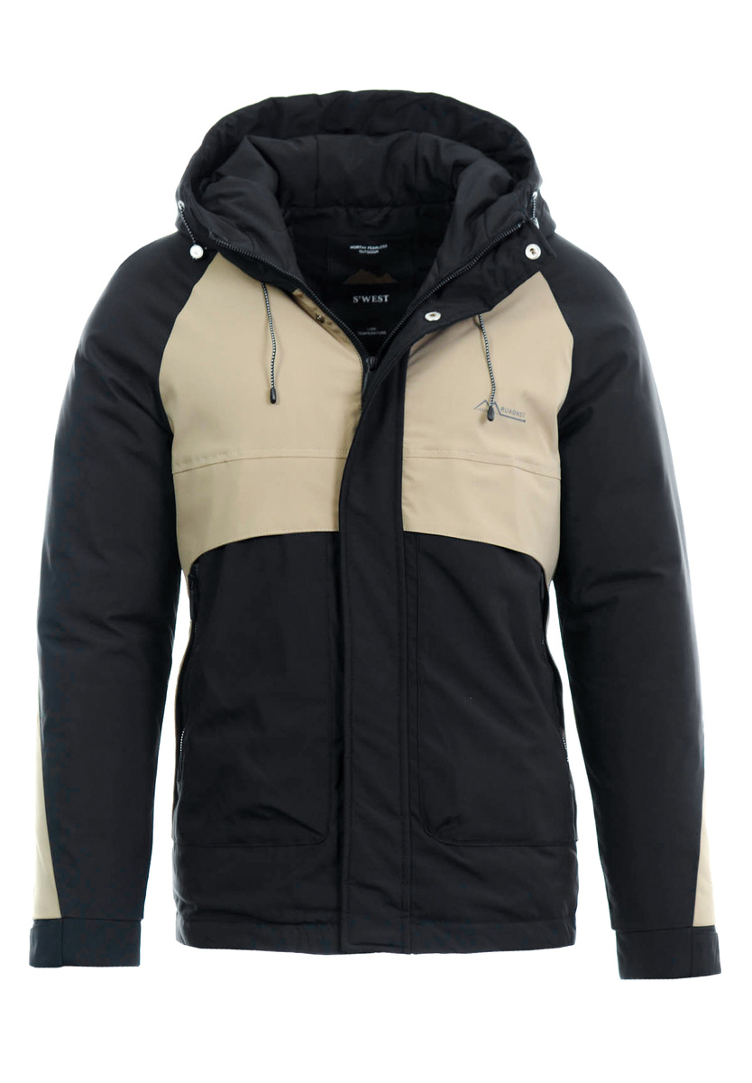 Męska zimowa kurtka beżowy. Zapinana na suwak i napy. Kurtka posiada dwie kieszenie na dole zapinana na suwaki. Nieodpinany kaptur ze ściągaczem zapewnia ze ściągaczem ciepło w zimowe, wietrze dni. Kurtka wykonana jest z materiałów najwyższej jakości. Kurtka ocieplona jest bardzo wysokiej jakości wypełnieniem syntetycznym, które zapewnia doskonałą termoizolację oraz wysoki komfort użytkowania. Mankiety zapinane na rzepę.