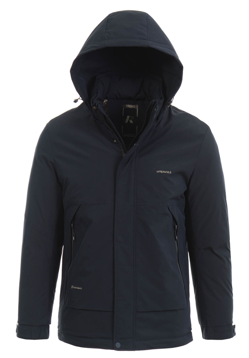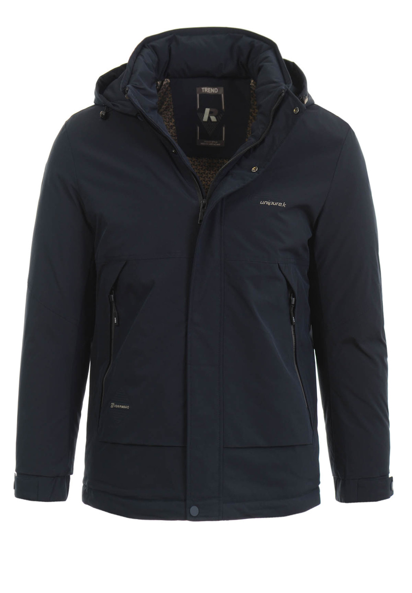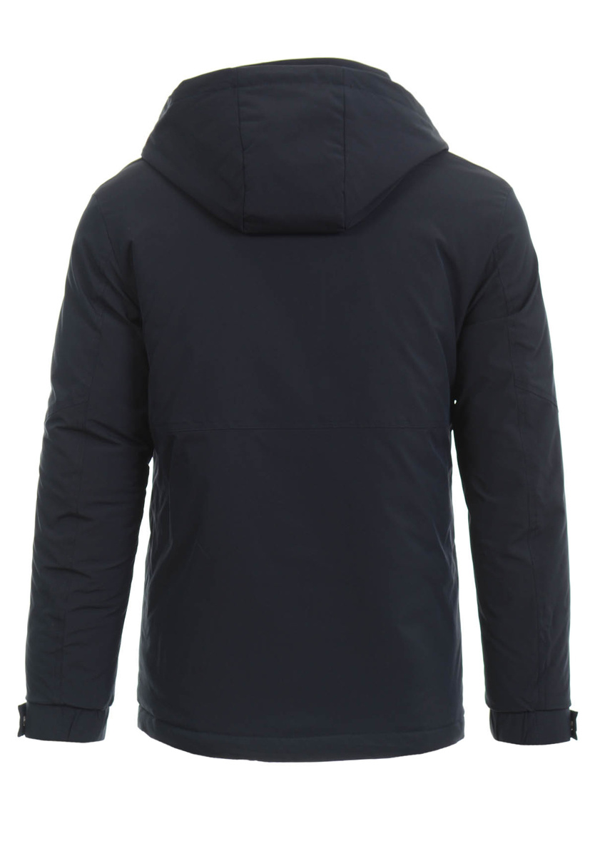 Męska zimowa kurtka granatowa. Zapinana na suwak i napy. Kurtka posiada dwie kieszenie na dole zapinana na suwaki. Odpinany kaptur ze ściągaczem zapewnia ciepło w zimowe, wietrze dni. Kurtka wykonana jest z materiałów najwyższej jakości. Kurtka ocieplona jest bardzo wysokiej jakości wypełnieniem syntetycznym, które zapewnia doskonałą termoizolację oraz wysoki komfort użytkowania. Mankiety zapinane na rzepę.