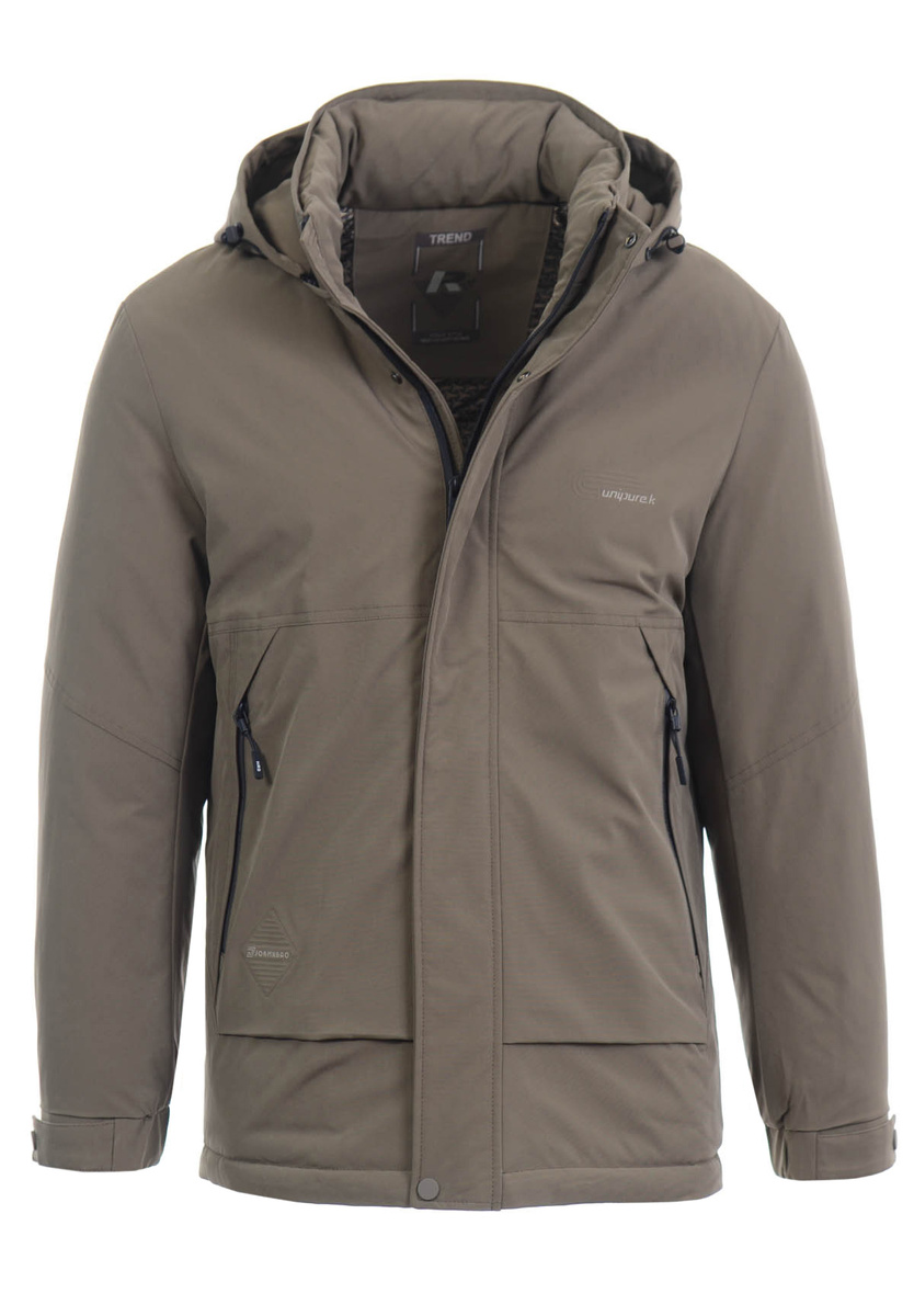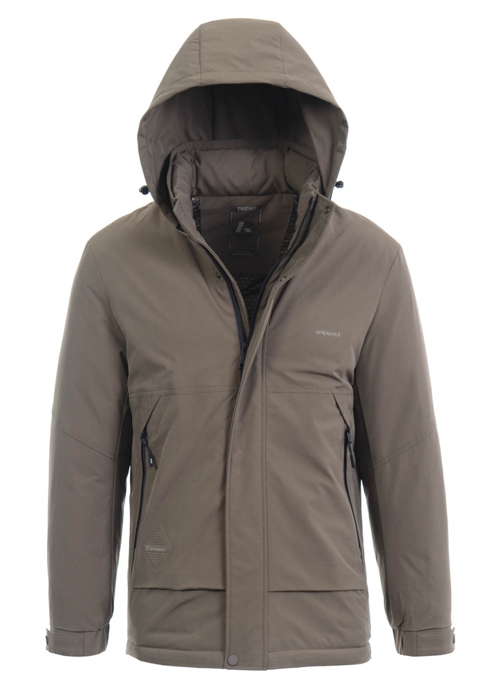 Męska zimowa kurtka brązowa. Zapinana na suwak i napy. Kurtka posiada dwie kieszenie na dole zapinana na suwaki. Odpinany kaptur ze ściągaczem zapewnia ciepło w zimowe, wietrze dni. Kurtka wykonana jest z materiałów najwyższej jakości. Kurtka ocieplona jest bardzo wysokiej jakości wypełnieniem syntetycznym, które zapewnia doskonałą termoizolację oraz wysoki komfort użytkowania. Mankiety zapinane na rzepę.