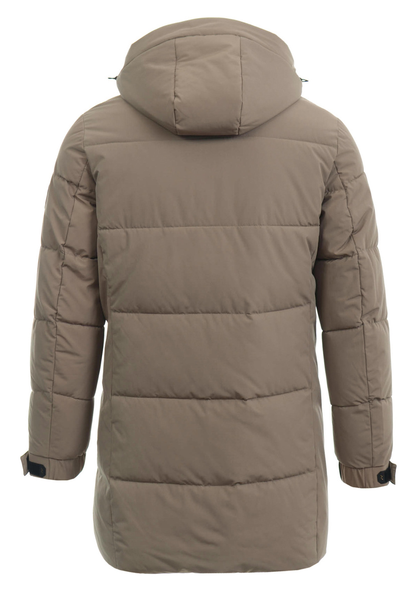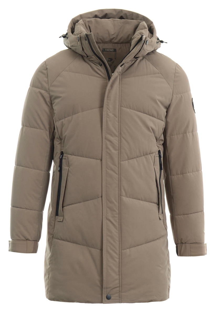 Męska zimowa kurtka brązowa. Zapinana na suwak i napy. Kurtka posiada dwie kieszenie na dole zapinane na suwak. Odpinany kaptur ze ściągaczem zapewnia ciepło w zimowe, wietrze dni. Kurtka wykonana jest z materiałów najwyższej jakości. Kurtka ocieplona jest bardzo wysokiej jakości wypełnieniem syntetycznym, które zapewnia doskonałą termoizolację oraz wysoki komfort użytkowania. Mankiety zapinane na rzep.