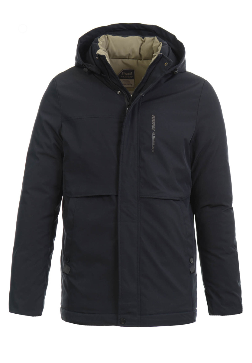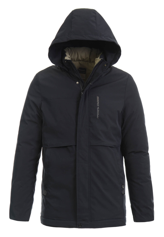 Męska zimowa kurtka granatowa. Zapinana na suwak i napy. Kurtka posiada dwie pojemne kieszenie na dole. Odpinany kaptur ze ściągaczem zapewnia ciepło w zimowe, wietrze dni. Kurtka wykonana jest z materiałów najwyższej jakości. Kurtka ocieplona jest bardzo wysokiej jakości wypełnieniem syntetycznym, które zapewnia doskonałą termoizolację oraz wysoki komfort użytkowania.