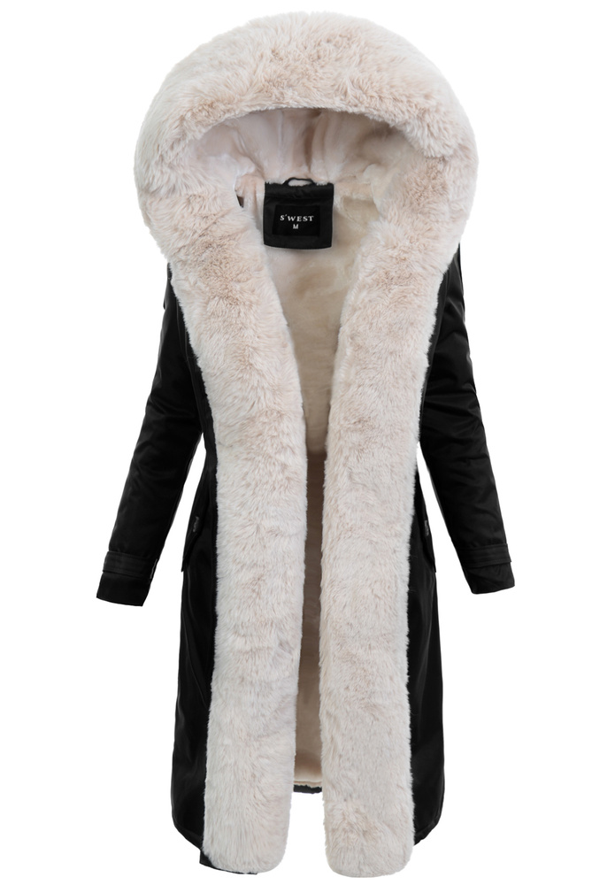 Damska Kurtka Parka Zimowa Dominika Czarna Z Futerkiem Ecru