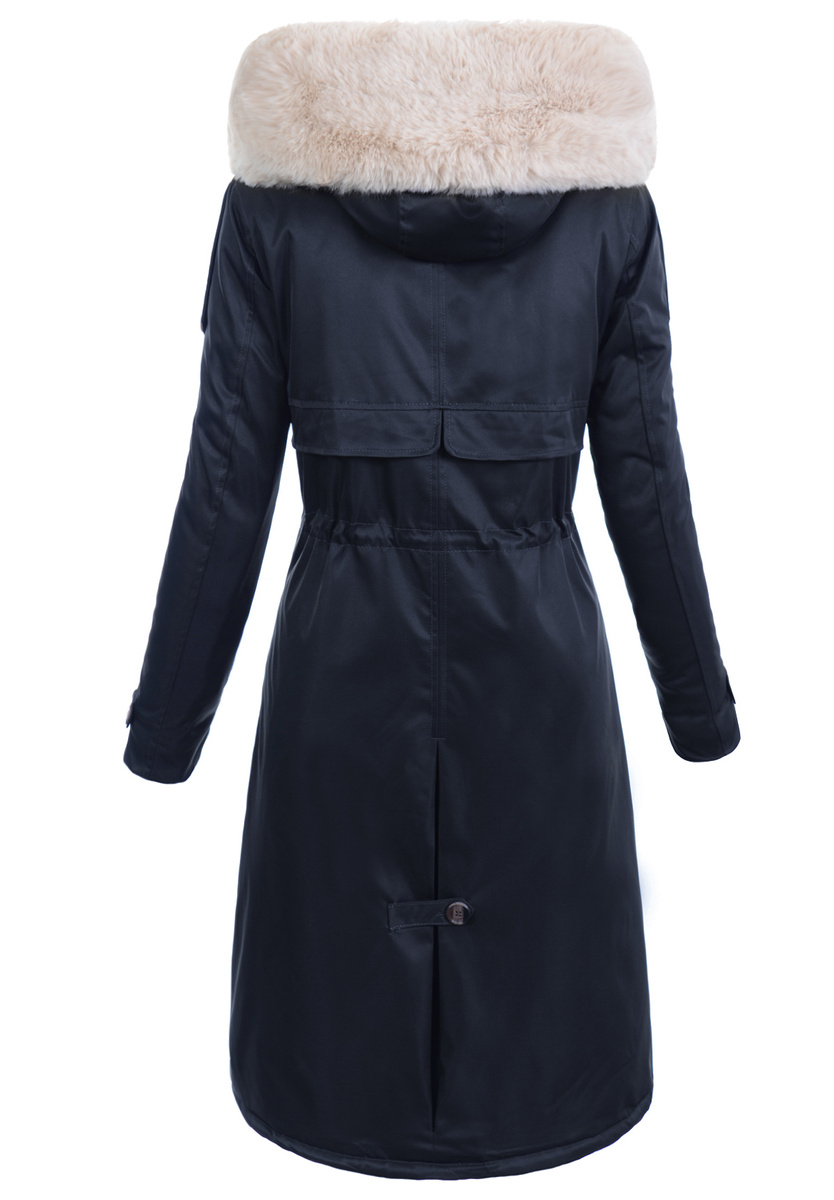 Damska Kurtka Parka Zimowa Dominika Granatowa Z Futerkiem Ecru