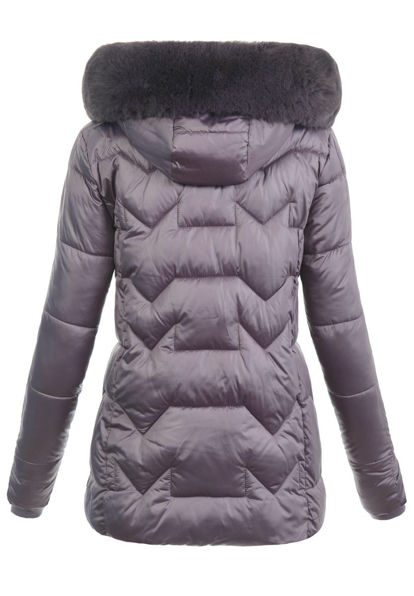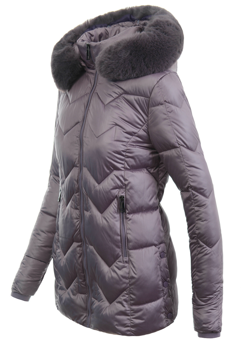 Przepiękna damska zimowa, pikowana kurtka w kolorze fioletowym. Kurtka zapinana jest na suwak. Ocieplona wysokiej jakości wypełnieniem syntetycznym, która zapewnia termoizolację i wysoki komfort użytkowania. Posiada dwie pojemne, zapinane na suwak kieszenie. Kurtka posiada odpinany kaptur z odpinanym futerkiem, który idealnie sprawdzi się jako ochrona przed wiatrem i deszczem.  Kurteczka jest idealnym rozwiązaniem dla osób ceniących sobie wygodę idealna do wielu stylizacji. Dodatkowo w rękawach znajdują się materiałowe ściągacze.