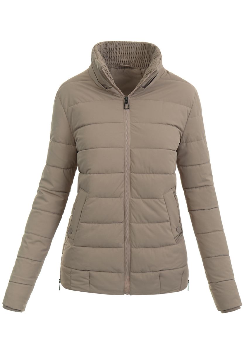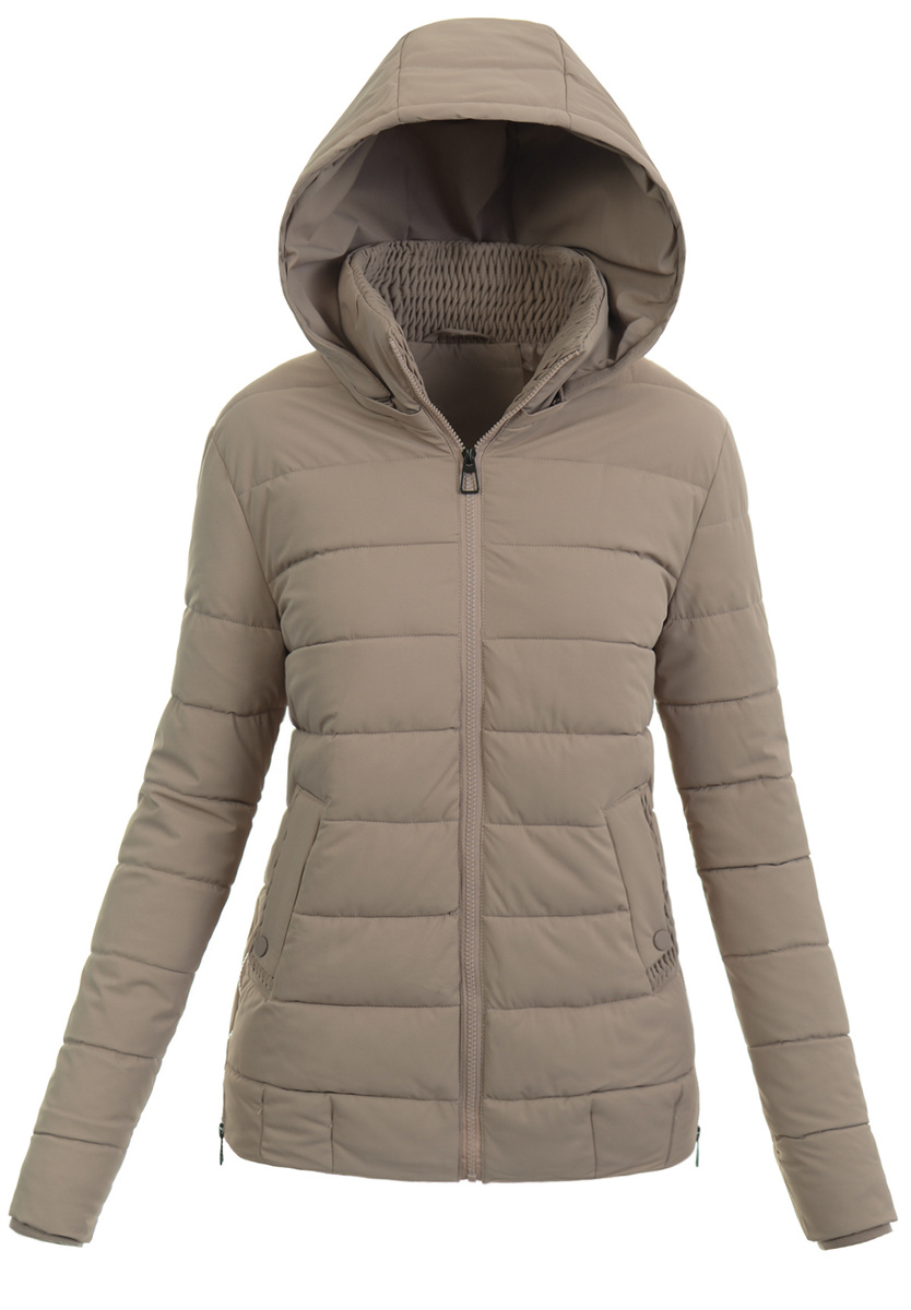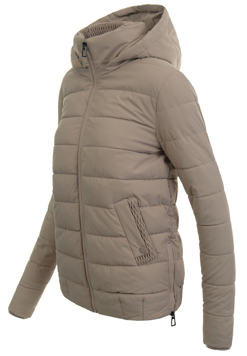 Przepiękna damska zimowa, pikowana kurtka w kolorze brązowym. Kurtka zapinana jest na suwak. Ocieplona wysokiej jakości wypełnieniem syntetycznym, która zapewnia termoizolację i wysoki komfort użytkowania. Posiada dwie pojemne kieszenie. Kurtka posiada odpinany kaptur, który idealnie sprawdzi się jako ochrona przed wiatrem i deszczem. Kurteczka jest idealnym rozwiązaniem dla osób ceniących sobie wygodę idealna do wielu stylizacji. Dodatkowo w rękawach znajdują się materiałowe ściągacze oraz suwaki po bokach kurtki.
