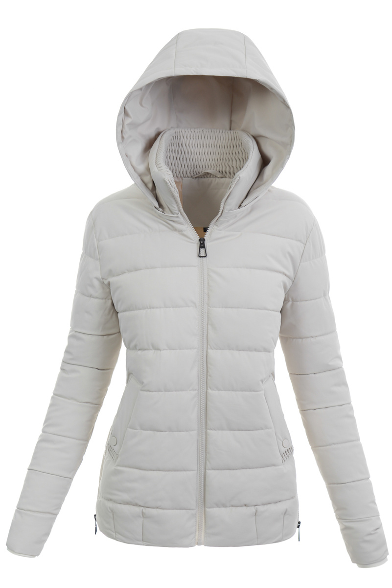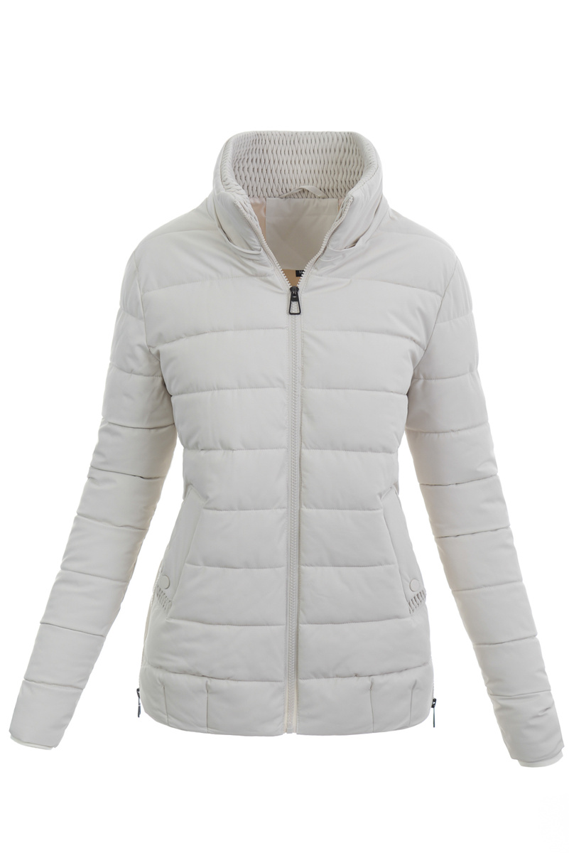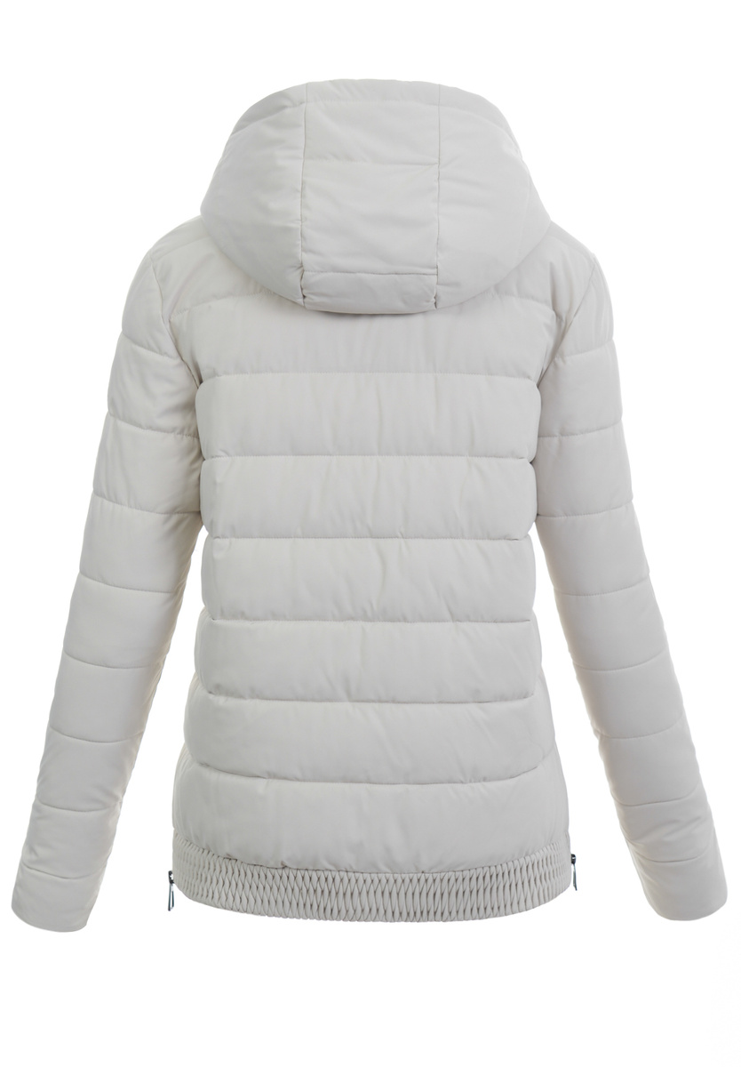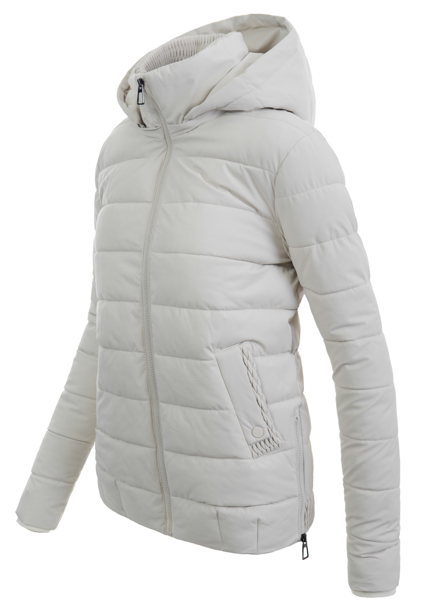 Przepiękna damska zimowa, pikowana kurtka w kolorze ecru. Kurtka zapinana jest na suwak. Ocieplona wysokiej jakości wypełnieniem syntetycznym, która zapewnia termoizolację i wysoki komfort użytkowania. Posiada dwie pojemne kieszenie. Kurtka posiada odpinany kaptur, który idealnie sprawdzi się jako ochrona przed wiatrem i deszczem. Kurteczka jest idealnym rozwiązaniem dla osób ceniących sobie wygodę idealna do wielu stylizacji. Dodatkowo w rękawach znajdują się materiałowe ściągacze oraz suwaki po bokach kurtki.
