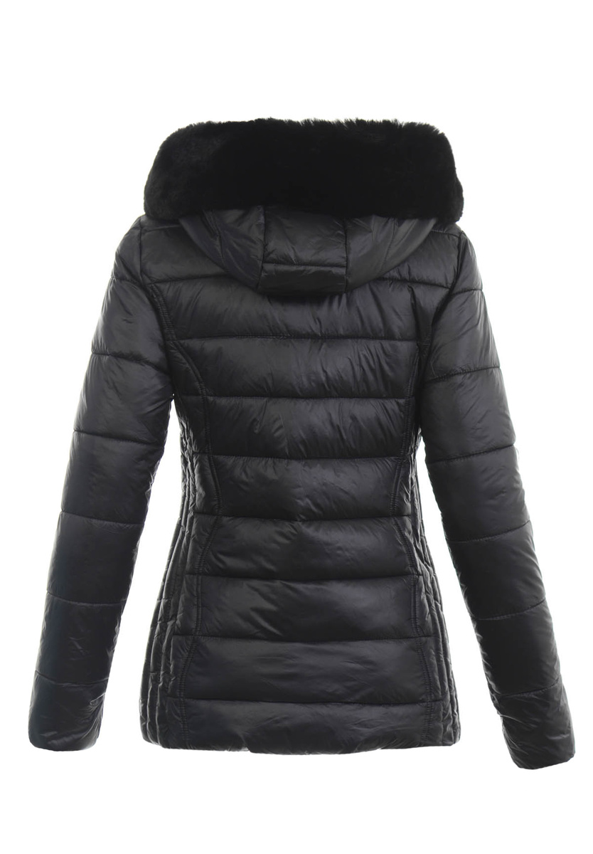 Przepiękna damska zimowa, pikowana kurtka w kolorze czarnym. Kurtka zapinana jest na suwak. Ocieplona wysokiej jakości wypełnieniem syntetycznym, która zapewnia termoizolację i wysoki komfort użytkowania. Posiada dwie pojemne, zapinane na suwak kieszenie. Kurtka posiada nieodpinany kaptur z odpinanym futerkiem, który idealnie sprawdzi się jako ochrona przed wiatrem i deszczem.  Kurteczka jest idealnym rozwiązaniem dla osób ceniących sobie wygodę idealna do wielu stylizacji.